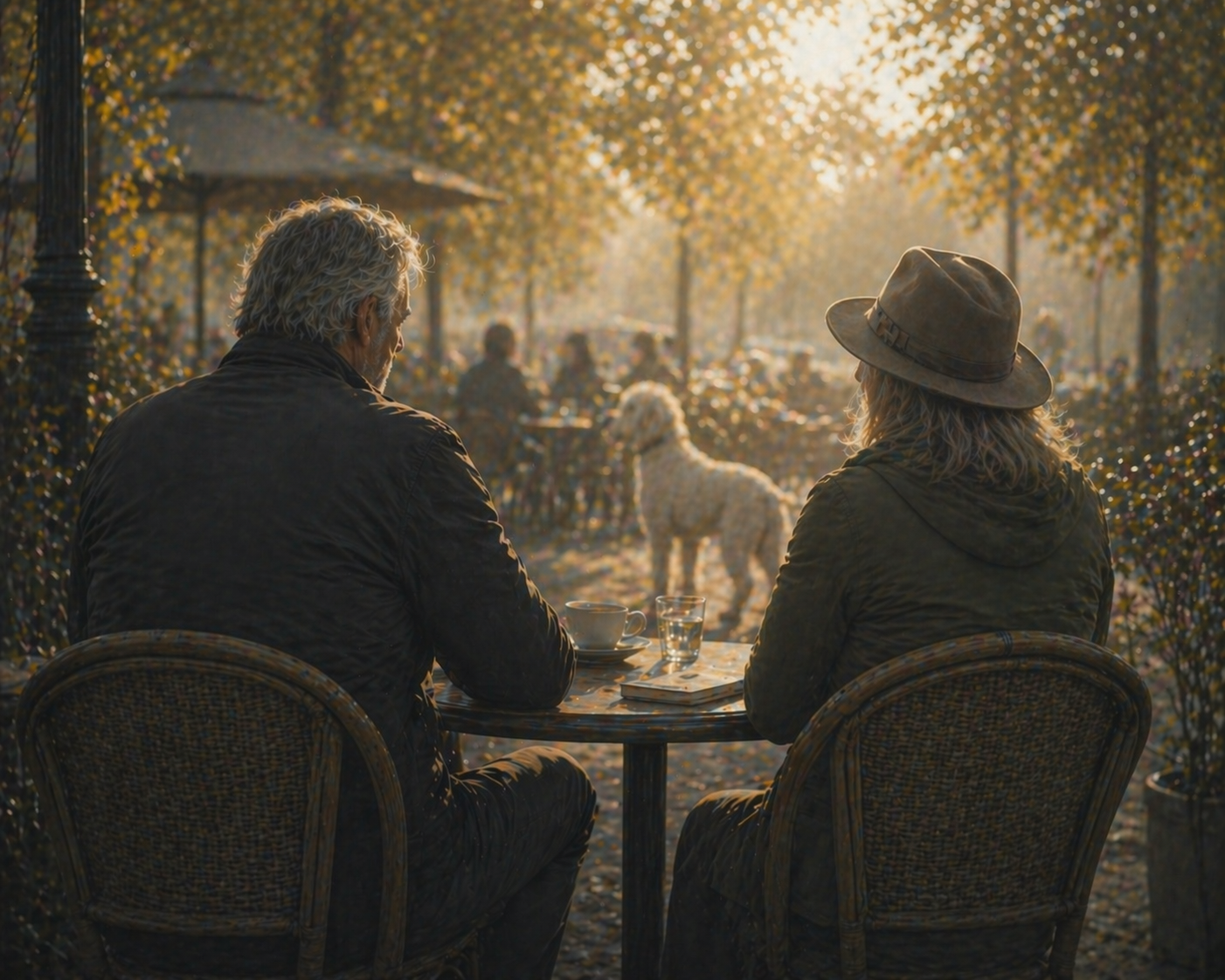 Ze zijn naast elkaar gaan zitten en knijpen genoeglijk hun ogen toe. Het is half oktober en de zon blijft maar schijnen. Heerlijk.